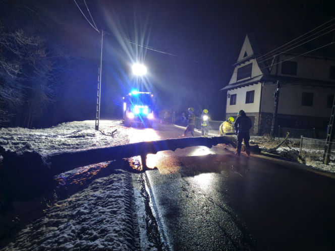 Śnieg przewrócił drzewo i zerwał linię energetyczną