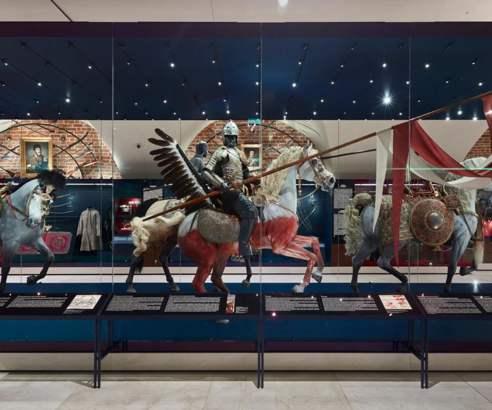 Jednym z najbardziej efektownych elementów wystawy jest orszak husarski. Zamiast pokazywać husarię w brutalnym kontekście bitewnym, kuratorzy zdecydowali się zaprezentować ją w wersji paradnej. To nawiązanie do tego, jak formacja ta zapisała się w polskiej pamięci historycznej jako symbol chwały i dumy narodowej. Centralnym punktem tej części ekspozycji są pełnowymiarowe figury koni, które wyglądają niezwykle realistycznie. Zostały one przygotowane przy użyciu nowoczesnych metod, a ich stylizacja nawiązuje do barokowej mody, kiedy to zwierzęta biorące udział w paradach były specjalnie fryzowane.